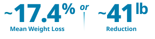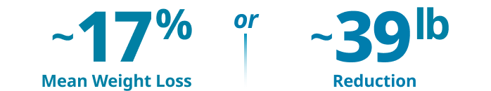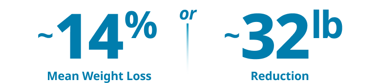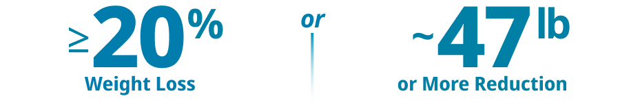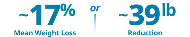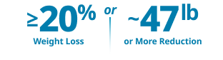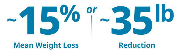 20.7% vs 2.4% (~6 lb) mean weight loss with placebo at 72 weeks, in an idealized scenario estimating efficacy if all patients remained on treatment and used no other weight-loss therapies§