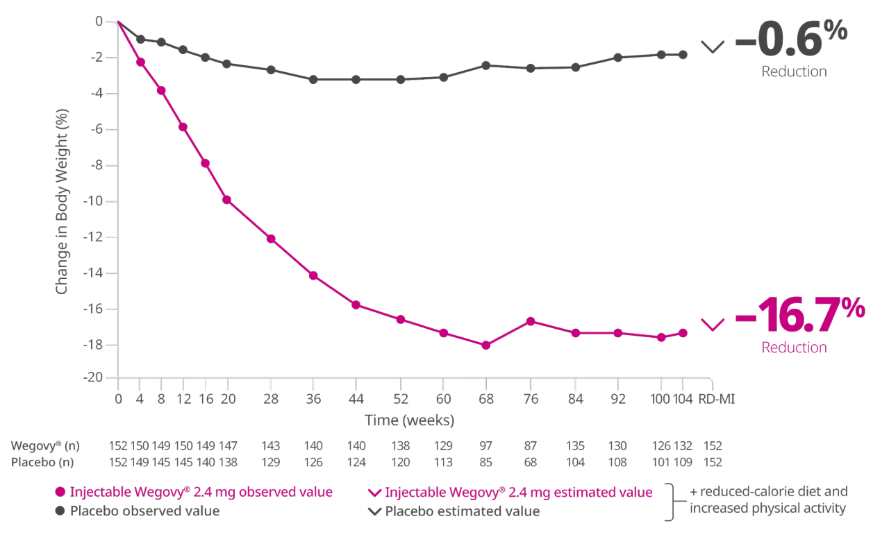 Wegovy® HD=247.8 lb; placebo=247.8 lb.1