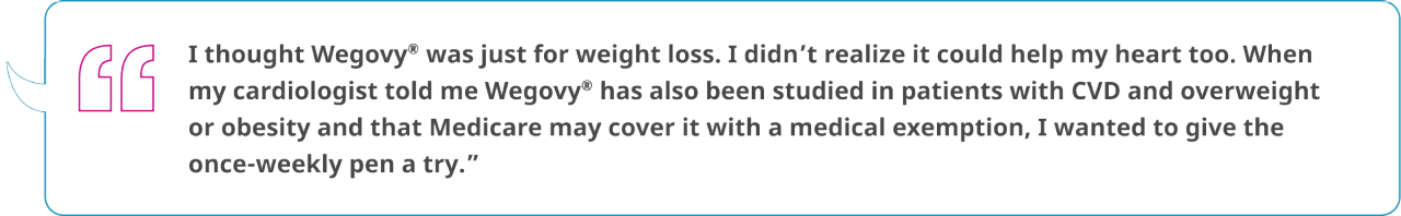 Added to CV standard of care therapy, Wegovy® can help manage CV risk for patients living with cardiovascular disease and obesity or overweight